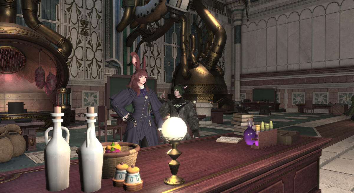James woke up tired. Throughout the night, his dreams had plagued him with the scent of bluebells, ringing laughter, and slashes of red, so rest, when it even came to him, hadn’t been so easy. And so, this morning had been filled with tired armor-putting-on, only to flop back on the couch he slept on in Yendry’s room to consume lots (lots) of the caffeinated tea she had in her kitchen. He knew that this particular blend was a recipe of Alender’s own creation, and though he’d never been told exactly what was in it, it really did wonders to calm him down after nightmares like those. Taking another sip, he idly wondered what he’d do today.Reks tinkered with his Memory Sphere Projection Device, it was almost like a table of sorts he had been tinkering with for the past few days now. No one in the Coven had seen the device yet since no one had really dropped by his room, though with Aura sneaking around as she often did he suspected maybe Aura had caught a glimpse of it. He was working on a section underneath the table and used a wrench to loosen some bolts, instantly regretting it as he realized the heavy metal piece the bolts held up was going to fall on top of him. As if on cue the metal piece dropped from the bottom of the device and hit him in the stomach. He recoiled in pain and curled into a ball, clenching his stomach, "Gods damnit, this would be so much easier if I had someone to help me..." He scooted out from underneath the Table-like device and stood up. His hair was a bit of a mess and his hands were covered in a grease-like substance. He grabbed a nearby rag to wipe off some of the fresh grease-like liquid before moving his goggles up. "I wonder if I could con Yendry into helping me with this... she's at least seen one of my Memory Spheres before, so she might understand my concept for this better than some of the others." He put down the rag before heading out into the hallway, walking to Yendry's room. He knocked politely on the door and waited, hoping that someone was home.A knock on the door startled James out of his thoughts. Was it Clover? Had someone else died? James sighed. Well, he supposed, since Yendry had left to go to the market two months ago that he’d have to be the one to face the music and see who it was. James downed the rest of his tea and stood, making sure his sword was at his side just in case it wasn’t someone he knew. He straightened his armor, the form-fitting black metal shining with fresh polish, and in two quick strides, he was at the door. James wrapped one hand around the silver hilt by his side, wrapped the other around the door handle, and yanked the door open only to face- “Ah! Hello. Reks, was it?”Reks was a bit startled at the speed at which the door opened. He hadn't expected James to be standing before him, "O-oh, uh James, right? Hi, yes, I'm Reks!" He paused for a moment and then peered into the room, wondering if Yendry was around, "Is uh, Yendry around today or is she out on business?" he asked. His ears twitched, he was always a bit awkward around newer people, and even though he had met James in passing they hadn't formally met. He would have extended his hand for a handshake, but seeing that there were still traces of grease on his hands he had decided against it.James gave the startled Miqo’to a quick up and down. He had grease on his hands and looked a bit frazzled as he spoke, but the latter could’ve just been due to the fact that they’d never really met before. “No, she’s out on business, I’m afraid. Could I help you with something?”Reks smiled awkwardly at James and looked down the hallway for a brief moment before looking back, "Ah yes... well, if you don't mind actually I'm working on something in my room and could use an extra set of hands so as to avoid injury." He thought for a moment, this might actually be an opportune moment to get to know James a bit better, he would use it to his advantage. He suddenly realized that his goggles were up instead of fixed over his eyes and a slight panic set in. He fixed it and pulled the goggles back into place, hiding his Al Bhed eyes from the Hyur standing before him.James gave Reks a mildly confused look at the way he hastily fixed his goggles over his eyes. Huh. Mildly concerning, but maybe he could use this opportunity to get to know the miqo’te a bit better. They’d really only gotten to speak at the library, and even then it had just been passing, so this could be the perfect chance to learn more about the man who sometimes started speaking a different language. “Sure, I could help. Would you like to lead the way?”Reks gave a simple nod and started walking down the hallway to his room, "I appreciate it, working on this project will be much simpler with an extra set of hands." His room was clean, aside from the workspace around the Table-like device. Trophies from his various battles adorned the room. Kyma, his familiar, was asleep on the bed as per usual. He left the door open for James and then got down on the ground on his back, scooting underneath the table-like device, "So this is uh... well, it basically projects images.." he trailed off, not sure how much detail he should go into right away. A book on Aetherial Manipulation could be seen on top of the table, opened to a page half way into the book. "When you're ready join me under the table." he said, as he reached for a few of his tools nearby, making sure to also grab an extra set of goggles from his toolbag a few inches away.James followed after Reks and walked in through the open door once they came to a stop. And once he entered, he could help but look at all of the trophies in awe. Even through the clutter around Reks’ workspace, the space was quite impressive. Being a paladin, he didn’t necessarily get trophies other than having to buy new armor, but maybe he’d have to buy something shiny just to feel better about himself now. James walked over to where Reks had gone under th